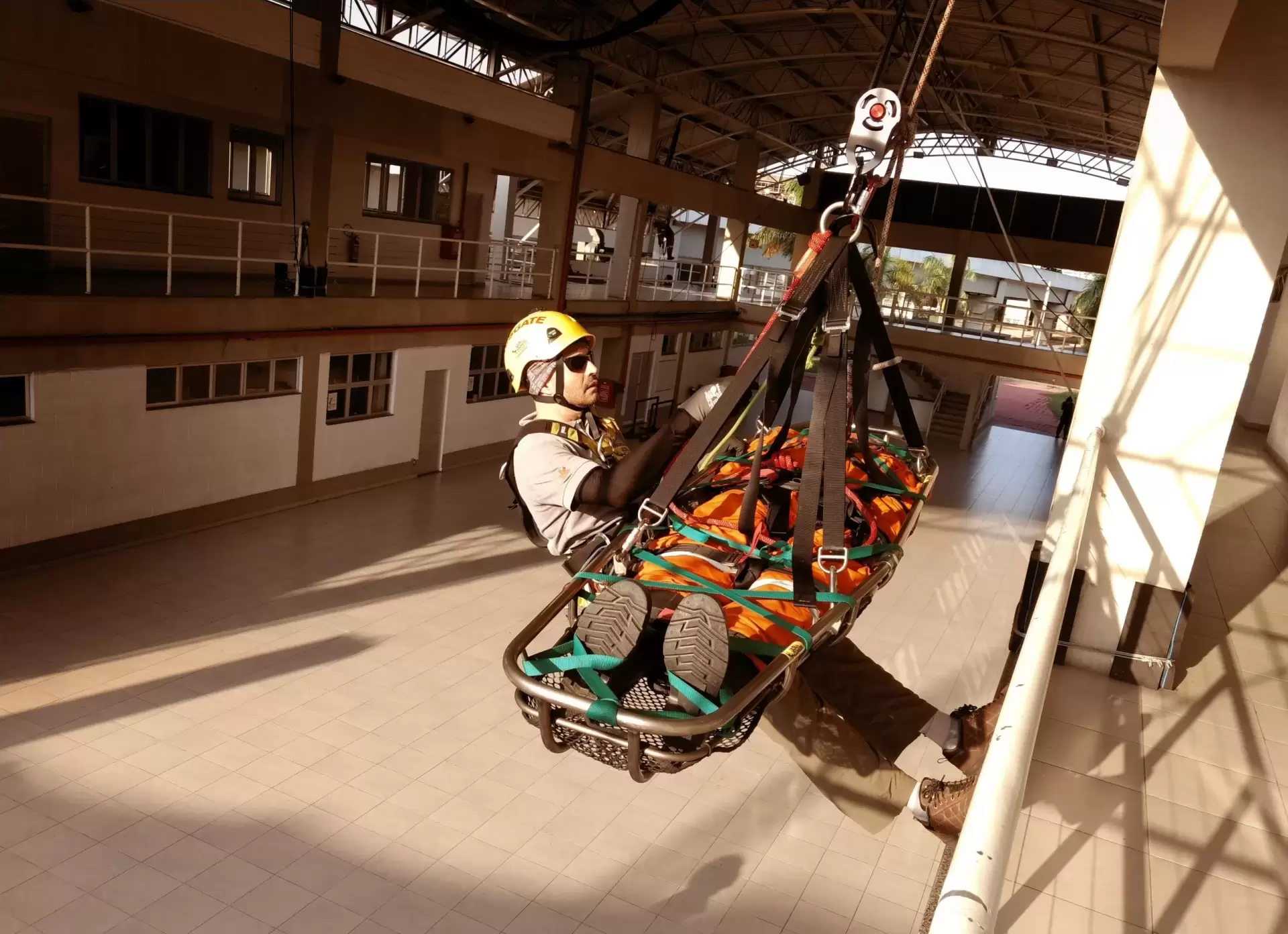 Nossa equipe de resgate é altamente capacitada, utilizando equipamentos certificados pela NFPA 1983. Seguimos as normas da NFPA e a NBR 16710-1 e 2 da ABNT, garantindo segurança e qualidade em resgates em altura e espaço confinado.